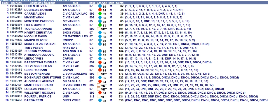 Le matin le vent était dans trop de directions à la fois, donc pas de régate, mais l’après-midi nous avons pu faire 9 courses en 1 flotte à 22 bateaux.