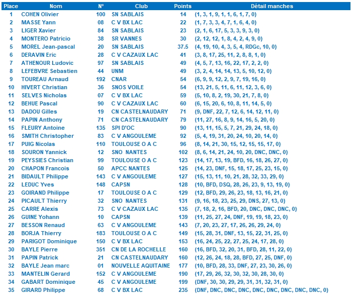 6 courses sous le soleil. Quelques figures en haut de jeu 1 puis vent faiblissant dans l’après-midi.